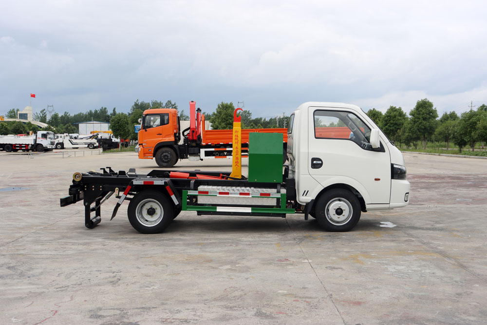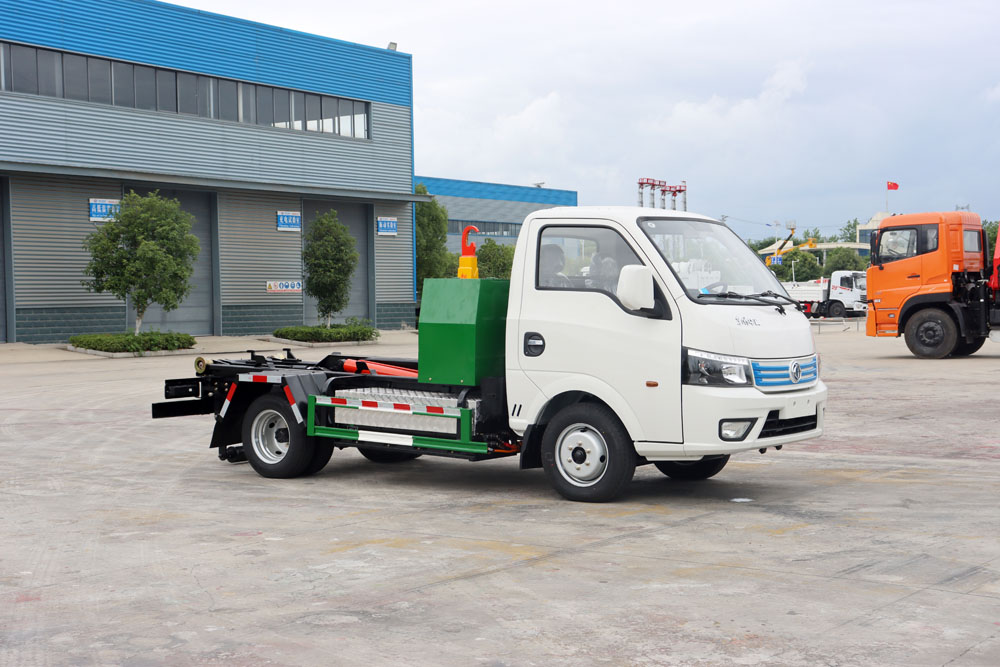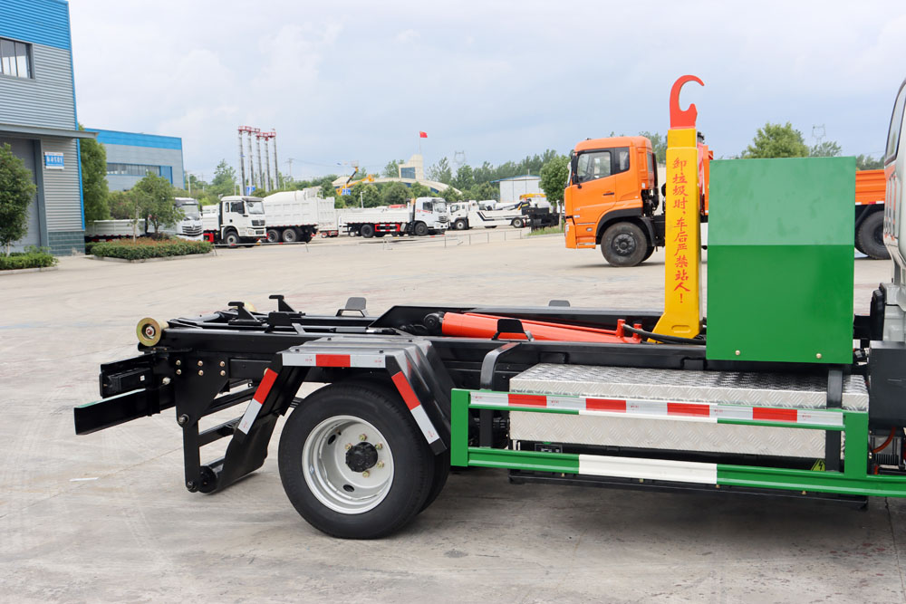 四、其他說(shuō)明: 東風(fēng)華神純電動(dòng)車廂可卸式垃圾車,是在純電動(dòng)二類底盤的基礎(chǔ)上,加裝垃圾箱勾臂、液壓系統(tǒng),由機(jī)械、液壓(氣路)、電器三部分合為一體的專用垃圾轉(zhuǎn)運(yùn)車。