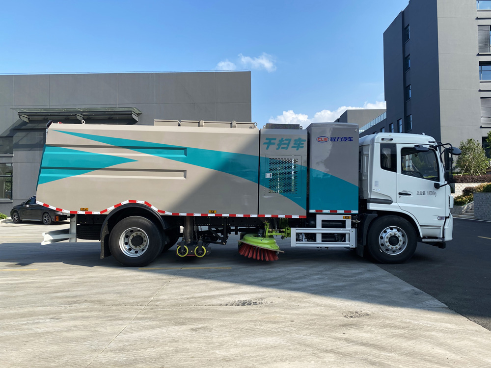 清掃:上裝電機驅動液壓油泵和風機工作。液壓油泵驅動左、右掃盤伸縮、升降、旋轉。左右掃盤將兩側的垃圾掃至洗掃車下面、吸嘴前方。