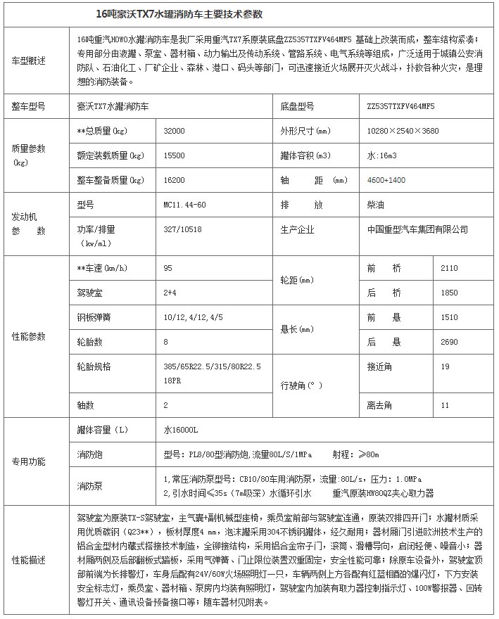 15.8噸重汽豪沃水罐消防車