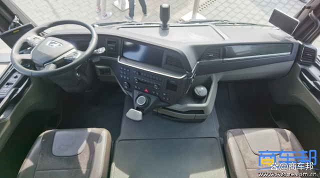 TGS 26.470 6×2-4采用工程車最常見的窄體平頂駕駛室,沒有做改裝處理,只是增加了車燈護網,下防護裝置,以及三段式保險杠。駕駛室為凸地板,中間地板比兩側地板高260mm左右,后排布置了單臥鋪,可供駕駛員進行臨時休息。從鉤臂式交換箱運輸使用場景的駕乘舒適性角度分析,前者是為了滿足高端客戶的個性化要求,而后者是為了滿足大多數建筑用戶的日常運輸需求。